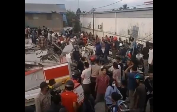 Dari video yang beredar di Grup WA, warga tampak berusaha menyelamatkan seorang karyawan perempuan Alfamart Gambut dari balik reruntuhan. Perempuan berhijab yang mengenakan baju seragam Alfamart bagian bawah tubuhnya terlihat masih terjepit reruntuhan.
