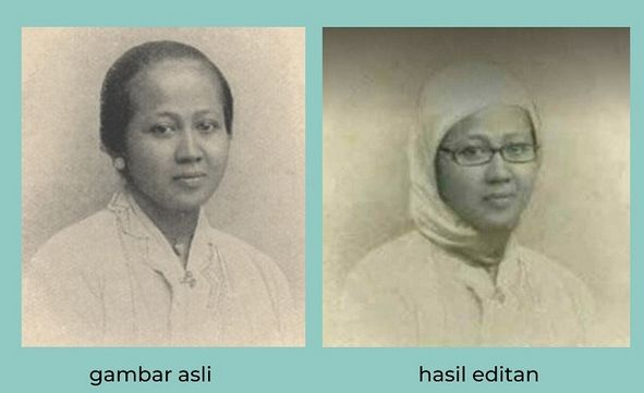 Bahkan, dalam beberapa hari ini, foto yang beredar di media sosial diklaim sebagai sosok RA Kartini menggunakan jilbab dan berkacamata.