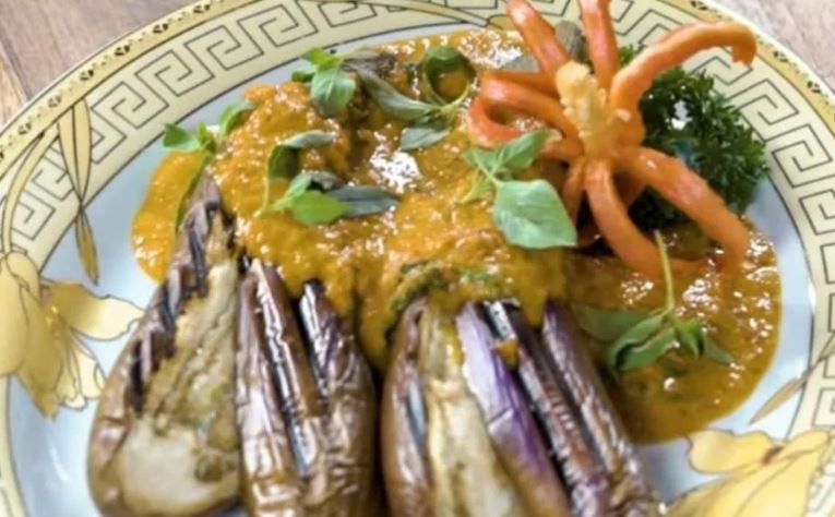 Rudy Choirudin melalui kanal YouTube Galeri Rasa, berbagi resep membuat terong bakar sambal santan yang cepat dan ekonomis.