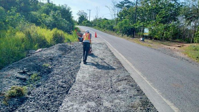 Untuk mengamankan jalur mudik, Pemerintah Kabupaten Tanahlaut (Tala) melakukan pengamanan dengan melakukan perbaikan badan jalan.