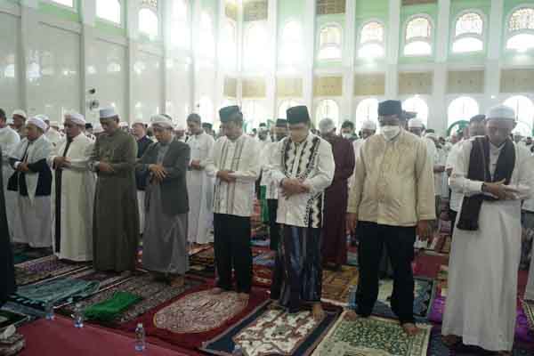 Salah Ied di Masjid Agung diikuti ratusan jamaah di antaranya mantan Wakil Gubernur Kalsel Rudy Resnawan, Ketua DPRD Banjarbaru Fadliansyah.
