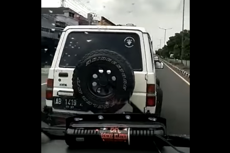 Dalam video, tampak mobil jip berwarna putih melaju di depan ambulans yang bersirene.