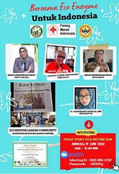 Webiner yang diikuti berbagai kalangan dari seluruh Indonesia itu mengusung tema, “Bersama Eco Enzyme untuk Indonesia Potensi Eco Enzyme Bagi Lingkungan”, Pariwisata, dengan topik : Potensi Eco Enzyme dalam Pencegahan dan Pengobatan PMK.