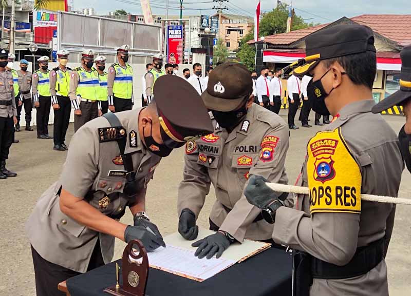 TANJUNG, KALIMANTANLIVE.COM – Polres Tabalong melakukan pergeseran sejumlah perwira yang diresmikan dalam upacara serah terima jabatan yang dipimpin Kapolres AKBP Riza Muttaqin, Rabu (22/6/2022).