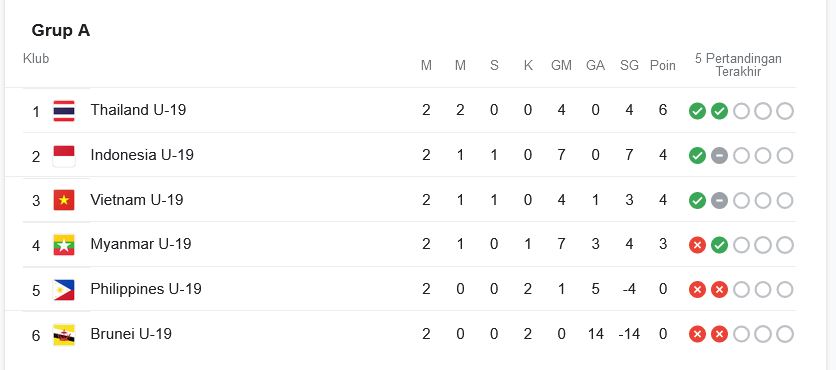 Klasemen Sementara Grup A Piala AFF 2022: