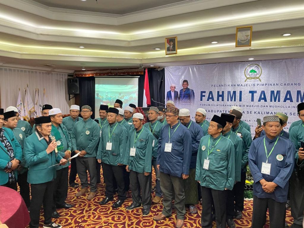 BANJARMASIN, KALIMANTANLIVE.COM – Ketua Umum Majelis Pimpinan Pusat Forum Silaturahmi Ta’mir Masjid dan Mushola Indonesia (MPP Fahmi Tamami), KH Rhoma Irama melantik Pengurus Majelis Pimpinan Cabang (MPC) Fahmi Tamami 13 kabupaten/kota se-Kalsel tahun 2022 di Banjarmasin.