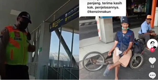 Dalam video, difabel yang diketahui bernama Ilham itu dilarang naik KRL lantaran alat bantu miliknya dianggap terlalu panjang oleh petugas Stasiun Solo Balapan.