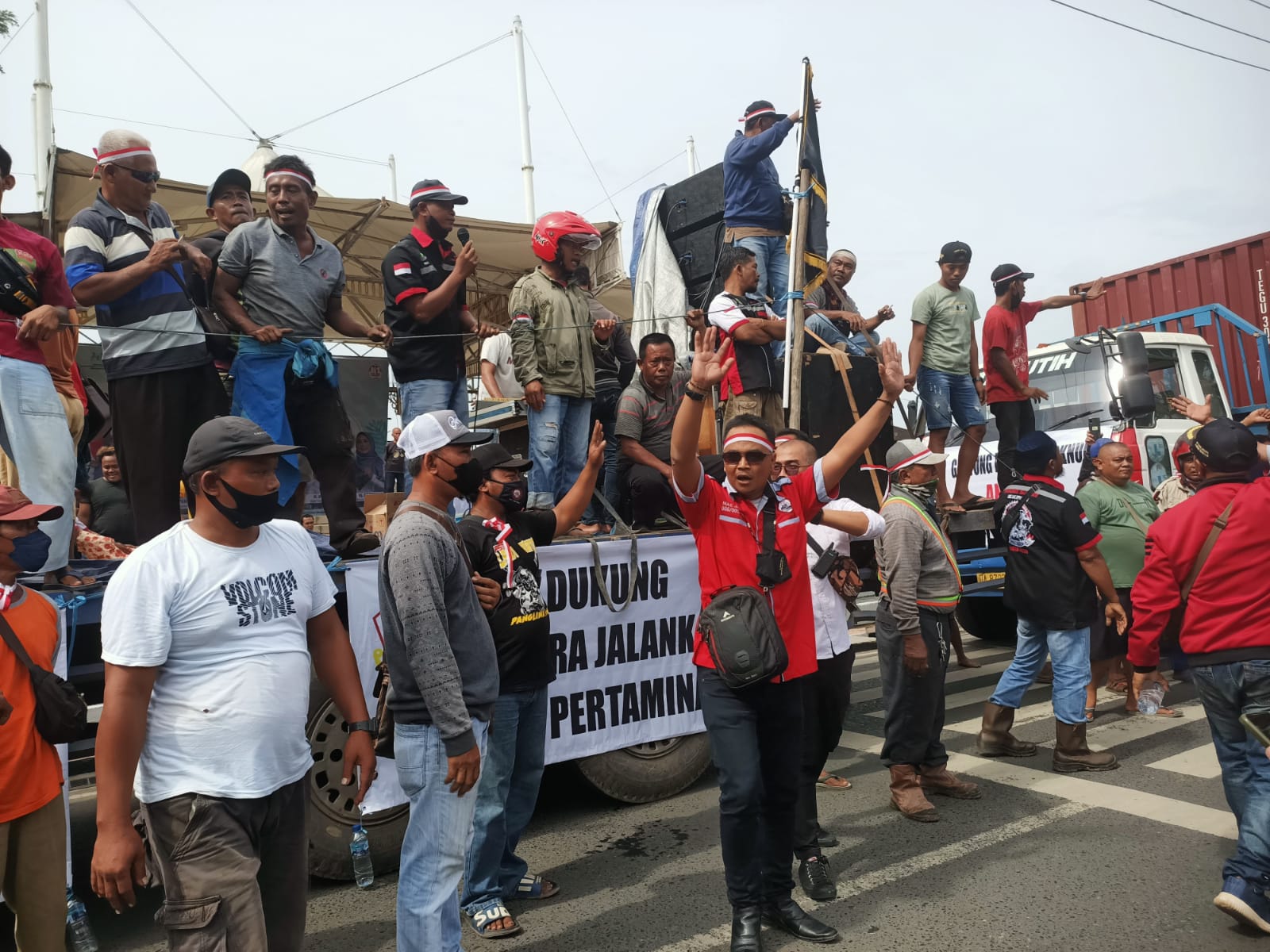 Dalam aksi tersebut, sedikitnya ada sekitar 200 orang massa dan 150 unit truk yang diturunkan.