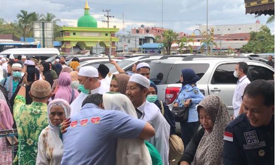 BANJARMASIN, Kalimantanlive.com – Kedatangan sebanyak 166 jemaah haji kloter tujuh Banjarmasin, Kalsel, mendapat sambutan haru dan diwarnai isak tangis anggota keluarga yang telah menantikan sanak saudaranya di halaman Kantor Kemenag Kota Banjarmasin, Selasa (2/8/2022).