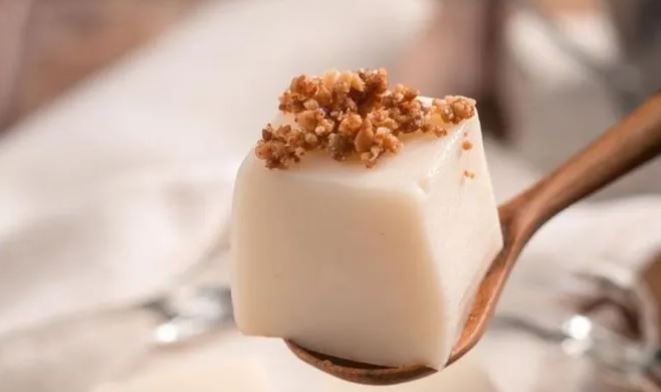 Taburi mochi susu dengan kacang bubuk.