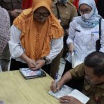 Wartono membubuhkan tanda tangan pada buku “Menderes Manisnya Takdir”.(pj/medcenBJB)