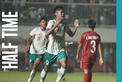 Indonesia unggul 1-0 lebih dahulu pada babak pertama lewat gol placing Kafiatur Rizky yang spektakuler pada menit injury time.