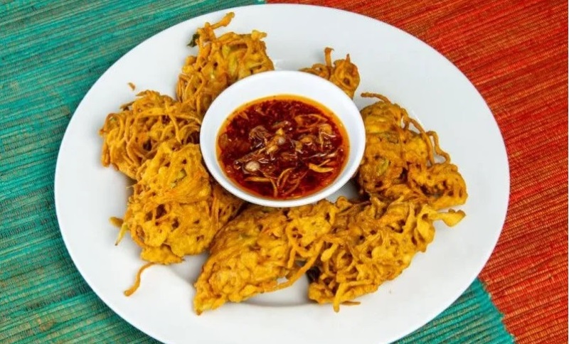 Untuk mendapatkan sensasi segar dengan menu ini, anda bisa mencoba bawang merah iris yang belum digoreng.