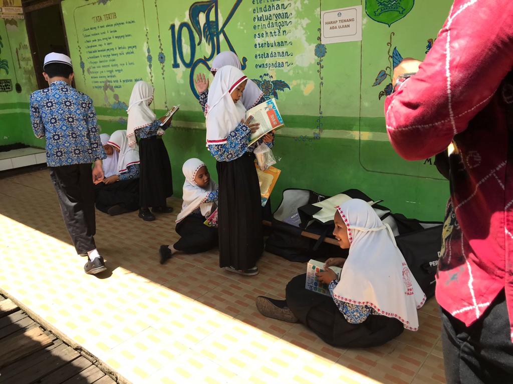 Ida, salah seorang guru mengaku senang didatangi tim gudang ilmu pengetahuan ini, guna menambah bahan bacaan anak-anak.