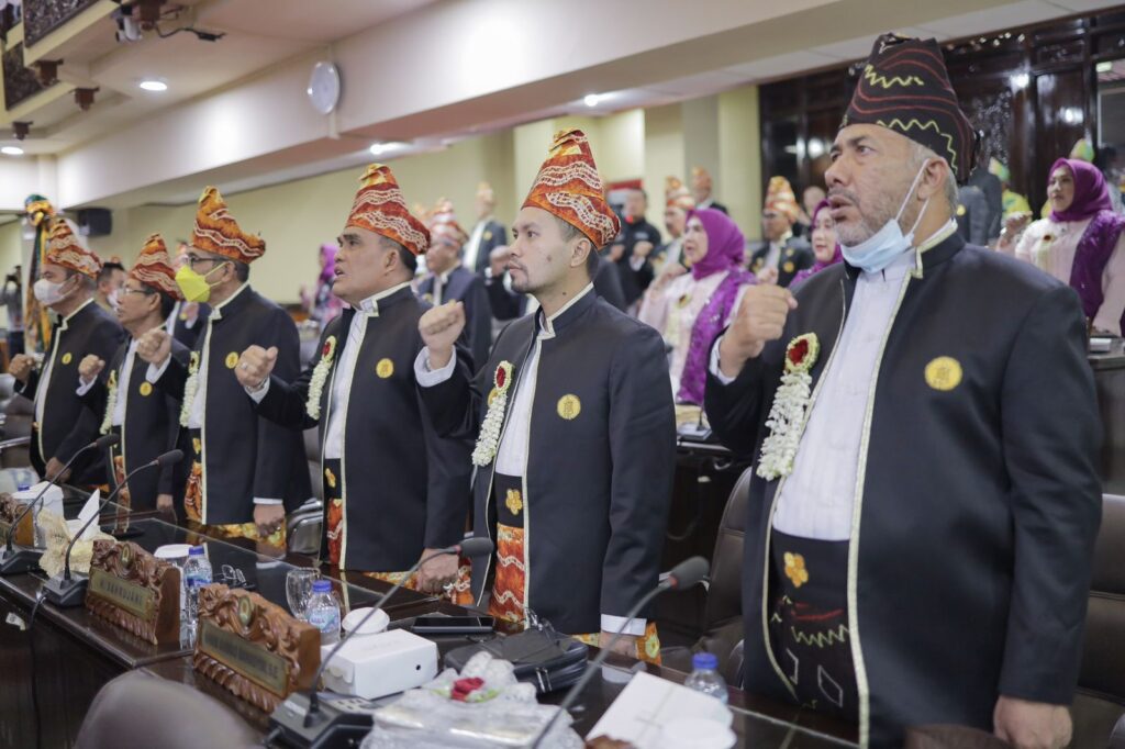 Anggota DPRD Kalsel mengenakan pakaia khas Banjar di Rapat Paripurna Istimewa DPRD dalam rangka Hari Jadi ke-72 Provinsi Kalimantan Selatan, Rabu (10/8/2022). (Humas: DPRD Kalsel)