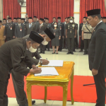 Tanda tangan berita acara pengambilan sumpah jabatan.(Yds/MedCenBJB)