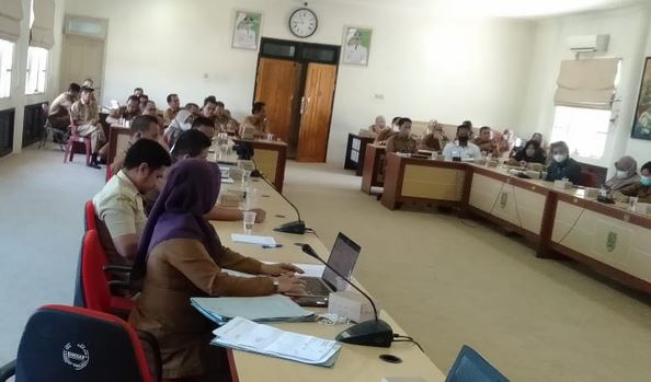 Rudiansyah Sofyan yang didampingi Asisten 2 Bidang ekonomi H Rody Rahmadi Noor dan Kabag Ekonomi Mahlianoor, mempersilahkan peserta rapat memaparkan program kegiatannya dalam rangka pengendalian inflasi daerah.