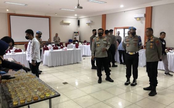 Selain itu, satu-persatu personel Polresta Banjarmasin diminta masuk ke Aula Rupatama Endra Dharma Laksana untuk dilakukan pemeriksaan urine.