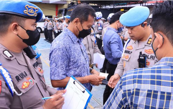 Ratusan personel diperiksa sikap kerapian tampang hingga kelengkapan administrasi seperti KTP, KTA, SIM dan STNK maupun Surat Izin Kepemilikan Senpi.