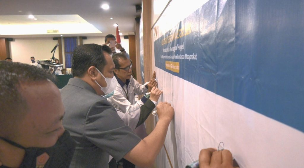 Rakor Persiapan Pendataan Awal Registrasi Sosial Ekonomi (REGSOSEK) tahun 2022 diakhiri dengan penandatanganan Komitmen bersama oleh Wali Kota Banjarbaru serta Forkopimda Kota Banjarbaru.
