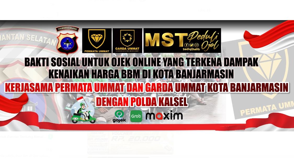 Dalam kegiatan ini, Partai Umat bekerjasama dengan Polda Kalsel, Permata Ummat dan Garda Ummat Kota Banjarmasin dan MST Peduli Ojol, Gojek, Grab dan Maxim.