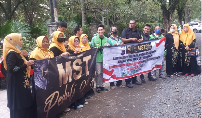 BANJARMASIN, Kalimantanlive.com – Partai Ummat melalui Permata Ummat dan Garda Ummat Kota Banjarmasin menggelar bakti sosial dengan membagikan voucher Pertalite dan sembako kepada kalangan ojek online yang terkena dampak kenaikan harga BBM, Rabu (21/9/2022).
