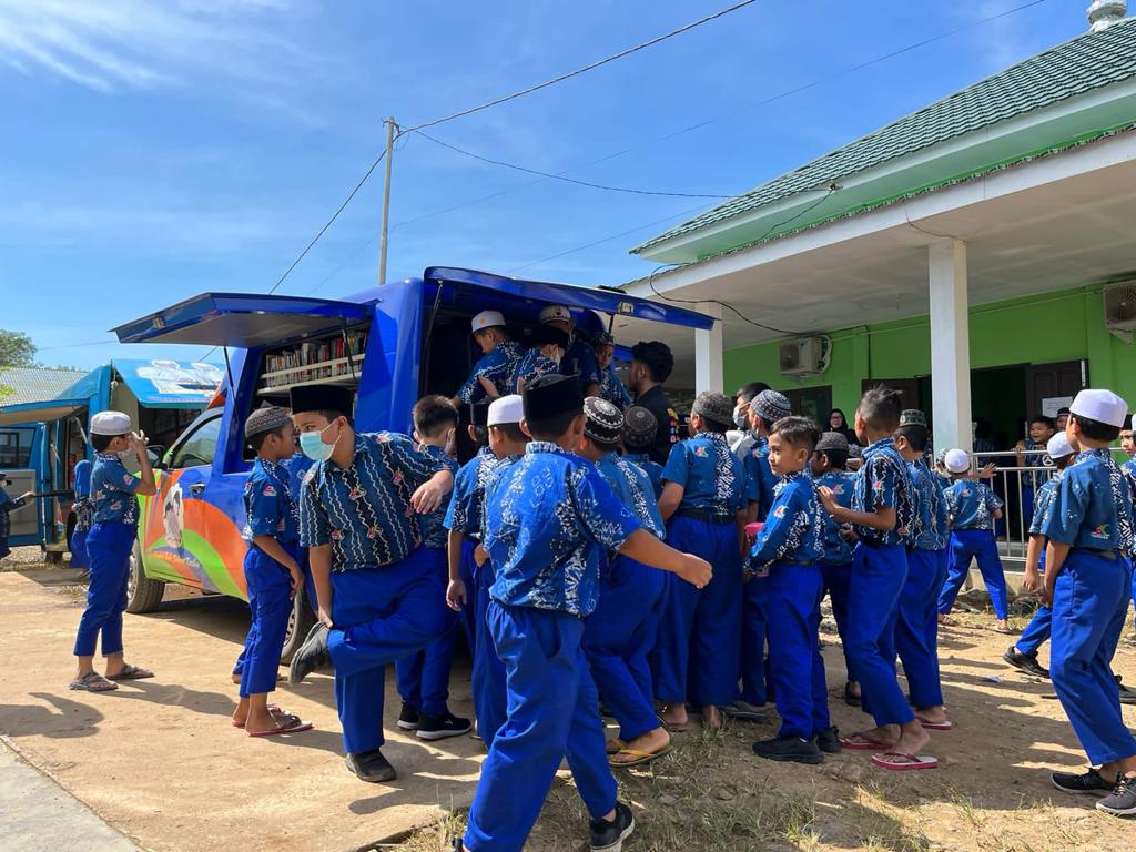 BANJARMASIN, KALIMANTANLIVE.COM – Ratusan anak-anak dari tiga sekolah di Kabupaten Tabalong, Kalimantan Selatan begitu antusias menyambut kedatangan tim perpustakaan keliling milik Dinas Perpustakaan dan Kearsipan Kalimantan Selatan (Dispersip Kalsel).