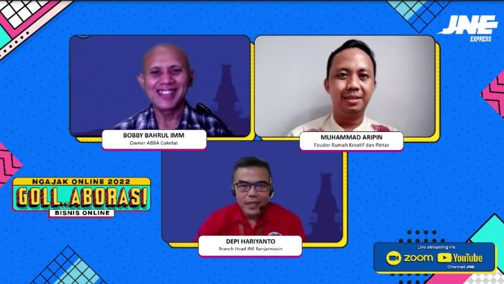 Hal ini dikupas di JNE Ngajak Online, Goll..Aborasi Bisnis Online 2022 Kota Banjarmasin yang digelar melalui webinar atau via zoom meeting, Senin (26/9/2022).