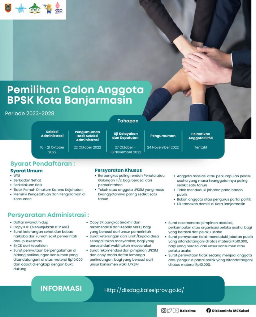 Kepala Dinas Perdagangan Provinsi Kalsel (Disdag Kalsel), Birhasani mengatakan, kepengurusan BPSK akan berakhir pada Maret 2023 mendatang, mengingat keberadaannya yang begitu penting dalam upaya perlindungan konsumen, maka Gubernur Kalsel kembali memerintahkan untuk segera melakukan persiapan pemilihan keanggotaan BPSK periode 2023 – 2028.