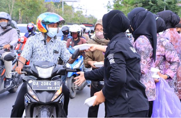 “Kami membagikan nasi kotak untuk sarapan pagi kepada masyarakat maupun pengguna jalan yang melintas,” kata Ipda Airin Sari Noya.