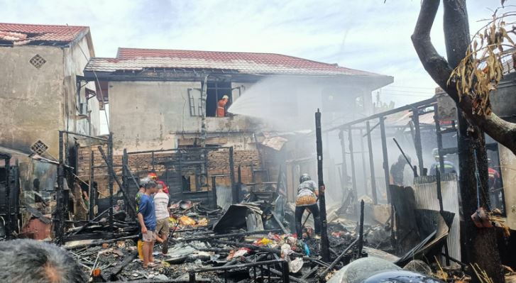 Sementara pihak kepolisian di lokasi kejadian tengah melakukan pendataan terhadap bangunan terbakar guna proses penyelidikan.