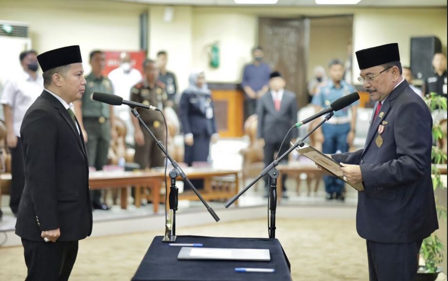 Ketua DPRD Kalsel H Supian HK mengambil sumpah janji Anggota DPRD Kalsel pengganti antrawaktu Risdianto Haleng di DPRD Kalsel, Rabu. (19/10/2022). (Humas DPRD Kalsel)
