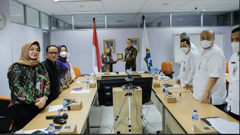 Komisi I DPRD Provinsi Kalimantan Selatan menggali informasi terkait SDM Aparatur Pemerintah ke BPSDM DKI Jakarta Jumat (7/10/2022). Ketua Komisi I Hj Rachmah Norlias menyerahkan cinderamata ke Ketua BPSDM. (Humas DPRD Kalsel)