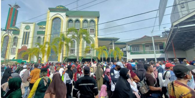 “Dari arahan kami disuruh menunggu di sini, di halaman masjid Al Jihad. Namun sampai ini belum ada dapat kupon, tidak hanya kami, tapi banyak juga menunggu berdesakan,” ujarnya.