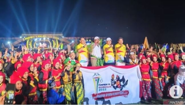 Prosesi pembukaan Porprov Kalsel 2022 di Kandangan HSS begitu meriah, diawali dengan persembahan Tarian Talabang Banua oleh 135 siswa dari SD, SMP, dan SMA/sederajat se-Kabupaten HSS.