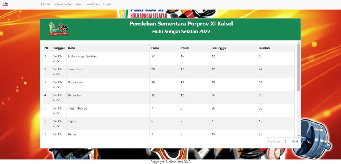 Diinformasikan, hasil perolehan sementara Porprov ke-XI Kalimantan Selatan Tahun 2022 diposisi ke-1 diduduki oleh Kabupaten Hulu Sungai Selatan dengan perolehan 22 emas, 16 perak dan 12 perunggu. Kemudian, posisi ke-2 diduduki oleh Kabupaten Tanah laut dengan perolehan 20 emas, 12 perak dan 12 perunggu.
