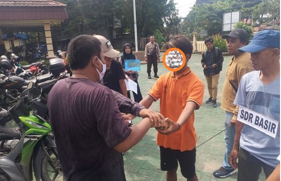 Tersangka pelaku pembunuhan S (16), memeragakan sebanyak 12 adegan rekonstruksi di Mapolsek Banjarmasin Selatan, terkait caranya menghabisi nyawa korban.
