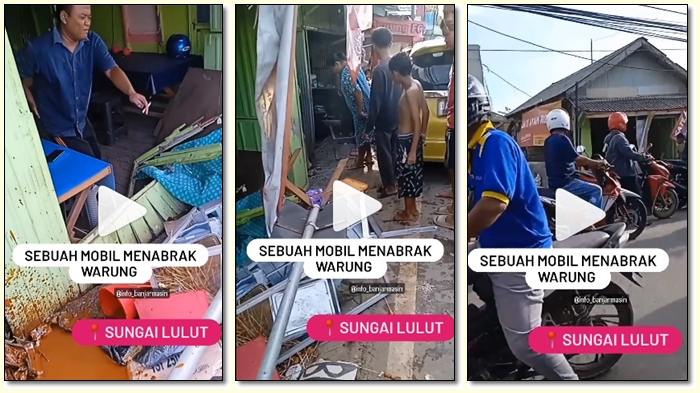 Usut punya usut, ternyata sebuah mobil jenis Honda Jazz berwarna kuning menabrak warung makan sate di Jalan Sungai Lulut, Kelurahan Sungai Lulut, Kecamatan Banjarmasin Timur tersebut.