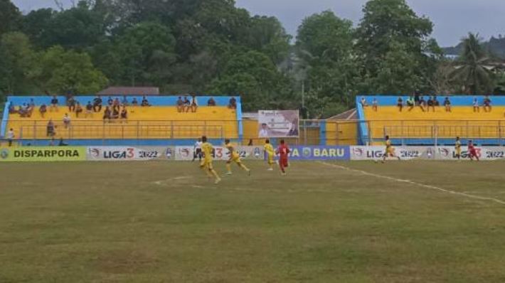 Laga Liga 3 2022 Asprov PSSI Kalsel Kotabaru FC vs PS Balangan berlangsung cepat. Tim tuan rumah Kotabaru FC langsung menekan lini tamunya PS Balangan
