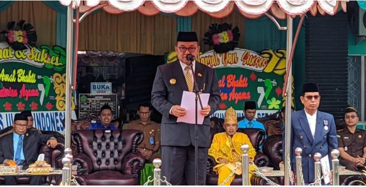Hal itu disampaikan Bupati Anang saat membacakan sambutan Menteri Agama RI, Yaqut Cholil Qoumas ketika menjadi pemimpin upacara peringatan Hari Amal Bhakti (HAB) ke-77 di halaman Kementerian Agama (Kemenag) Kabupaten Tabalong, Selasa (03/01/2023).