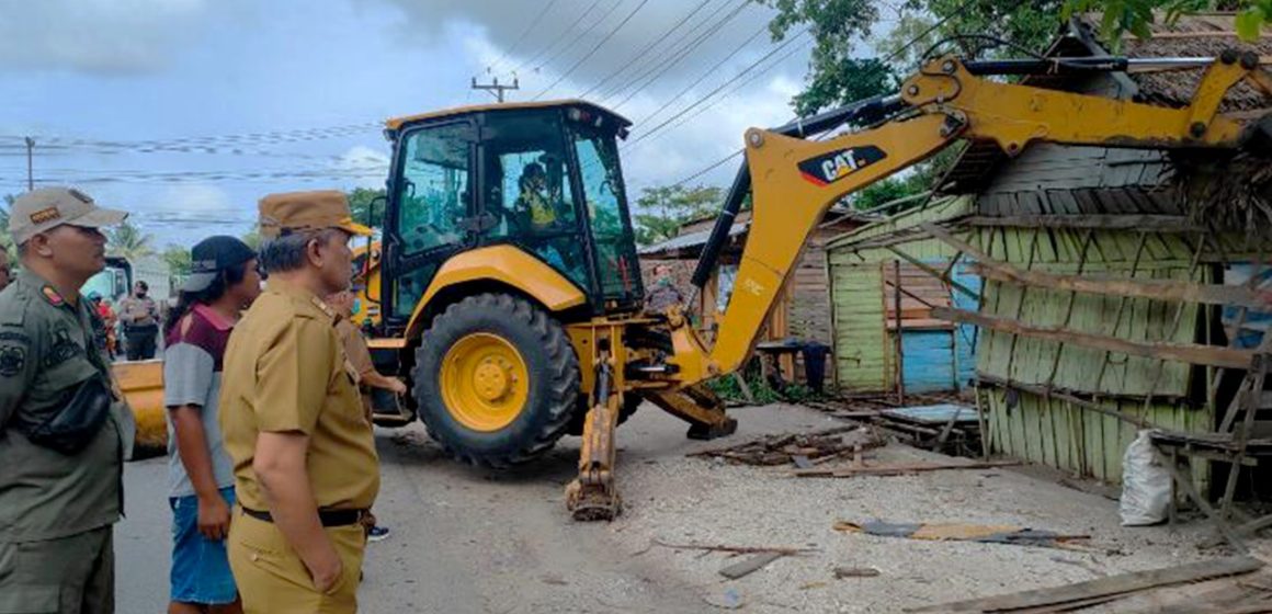BANJARBARU, KALIMANTANLIVE.COM – Warung remang-remang atau warung jablai yang berada di Jalan Trikora Simpang LIK, Kelurahan Landasan Ulin Selatan, Kecamatan Liang Anggang, akhirnya dibongkar paksa oleh petugas Pemko Banjarbaru, Selasa (2/1/2023) kemarin.
