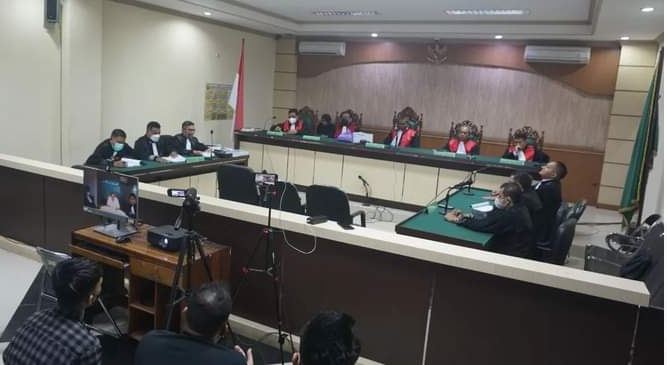 Sidang dugaan korupsi dengan terdakwa Mardani H Maming digelar di Pengadilan Tipikor Banjarmasin dipimpin Ketua Majelis Hakim Heru Kuntjoro, didampingi empat hakim anggota, Aris Bawono Langgeng, Jamser Simanjuntak, Ahmad Gawi dan Arief Winarno.