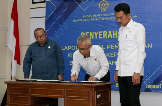 BANJARBARU, Kalimantanlive.com – Kepala Badan Pemeriksa Keuangan (BPK) Perwakilan Provinsi Kalimantan Selatan Rahmadi menyerahkan Laporan Hasil Pemeriksaan (LHP) atas pemeriksaan kinerja terhadap upaya penyediaan akses air minum serta sarana dan prasarana sanitasi untuk mendukung kesehatan lingkungan tahun 2021 sampai semester I tahun 2022, kepada Pemkab Banjar dan Tanah Laut, di Banjarbaru, Rabu (18/1/2023) pagi.