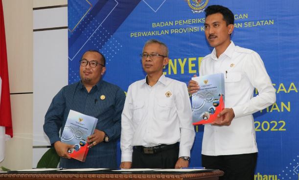 LHP diterima Bupati Banjar Saidi Mansyur bersama Wakil Ketua 2 DPRD Banjar Akhmad Rizanie Anshari dan Bupati Tanah Laut H Sukamta beserta Ketua DPRD Tanah Laut Muslimin.