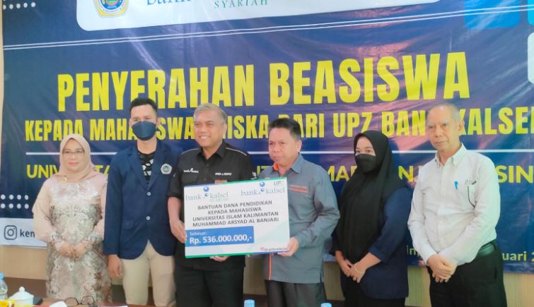Terbaru, Bank Kalsel memberikan beasiswa melalui Unit Pengumpul Zakat (UPZ) kepada ratusan mahasiswa Universitas Islam Kalimantan Muhammad Arsyad Al Banjari (Uniska MAB) dengan total Beasiswa mencapai Rp 812 juta.