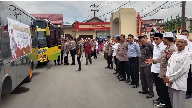 Rombongan jemaah umrah secara resmi dilepas oleh Wakil Bupati Kotabaru Andi Rudi Latif SH di halaman Mako Polres Kotabaru, Rabu (1/2/2023).