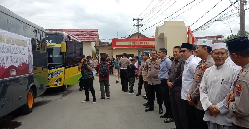Rombongan jemaah umrah secara resmi dilepas oleh Wakil Bupati Kotabaru Andi Rudi Latif SH di halaman Mako Polres Kotabaru, Rabu (1/2/2023).
