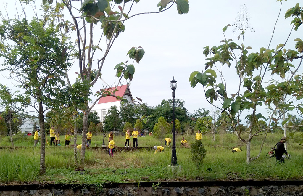 Kepala Bakesbangpol Provinsi Kalsel, Heriansyah turut serta sekaligus mengomandoi puluhan pegawai pada kegiatan bersih-bersih.