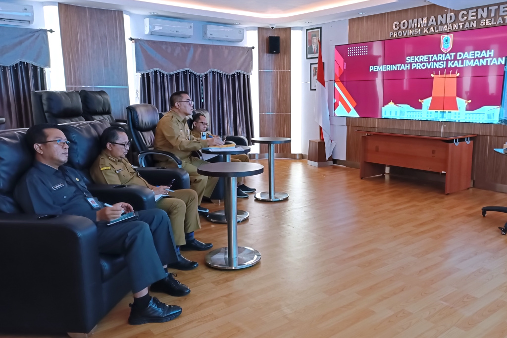 Gubernur Kalimantan Selatan, H Sahbirin Noor yang diwakilkan Asisten I Pemerintahan dan Kesejahteraan Rakyat Setdaprov Kalsel, Fajar Desira mengikuti Rakornas Pengendalian Inflasi melalui virtual di Command Center Banjarbaru.