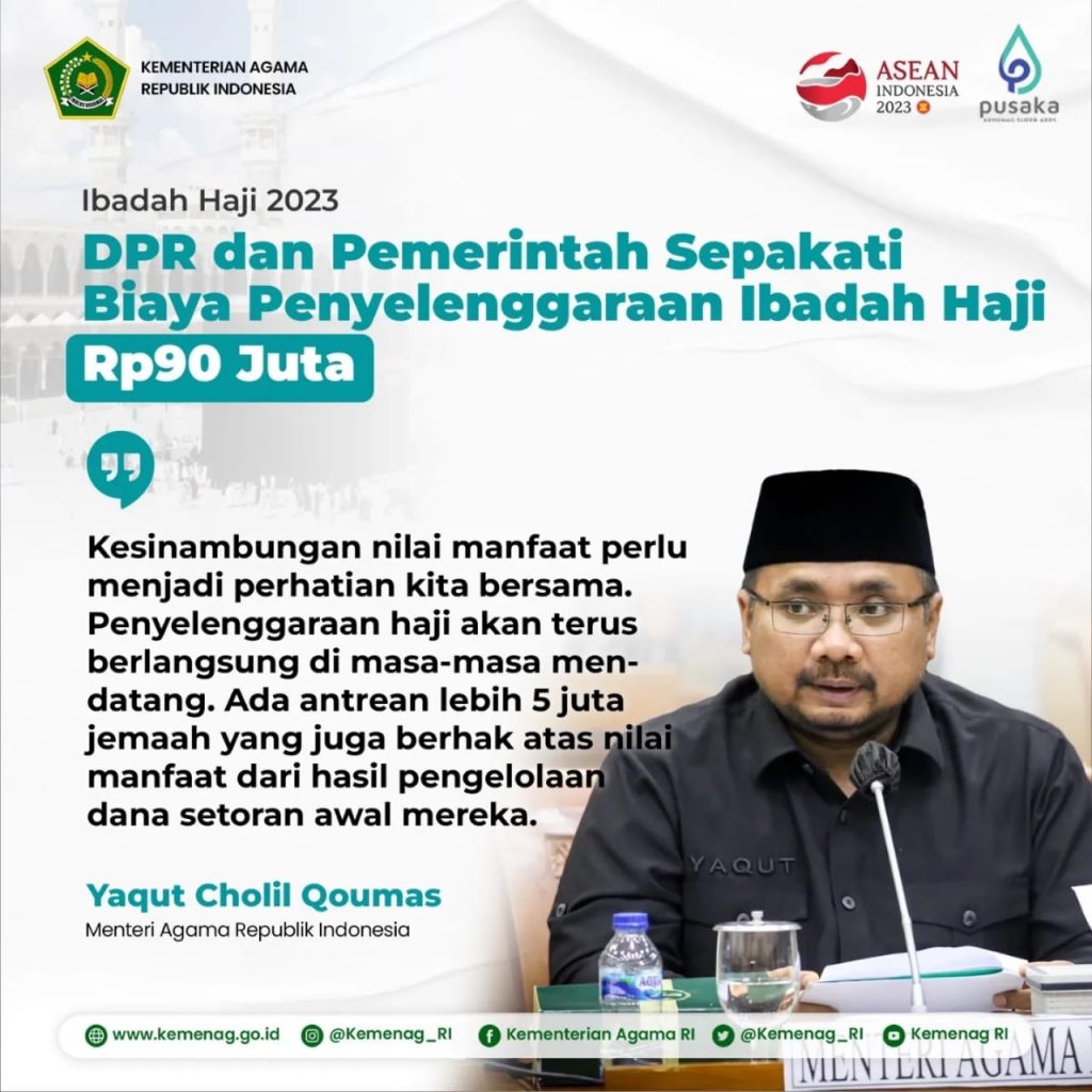Kesepakatan tersebut diharapkan akan segera diusulkan kepada Presiden untuk diterbitkan Keputusan Presiden tentang Biaya Penyelenggaraan Ibadah Haji, sehingga calon jamaah haji juga memiliki acuan terkait biaya haji Tahun 1444 H 2023 M saat ini.